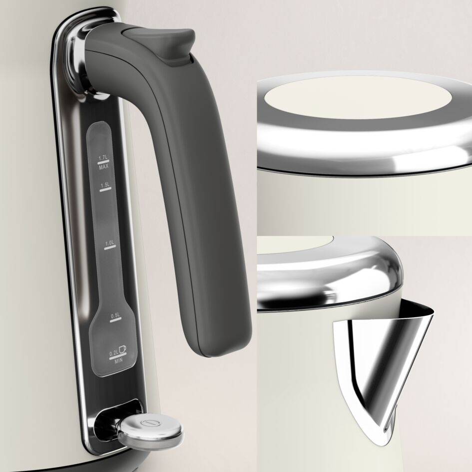 Premium roestvrijstalen waterkoker in retrostijl met chromen afwerking en ergonomisch deksel Deksel met anti-kalkfilter en brede, handmatige opening voor probleemloos vullen en schoonmaken Bereid in een oogwenk de exacte hoeveelheid water om tijd te besparen of gebruik de one-cup indicator om één kopje te maken Automatische uitschakeling wanneer het water het kookpunt bereikt of helemaal op is, voor totale gemoedsrust - met indicatielampje Elektrische waterkoker met een ruime inhoud van 1,7 liter, ideaal voor het bereiden van 7 kopjes en perfect voor je familie en vrienden Nauwkeurige schenkmond om niet te morsen bij het schenken 2400 W vermogen voor snel opwarmen en hete dranken in een handomdraai - ideaal als je het 's ochtends druk hebt Gemakkelijk schoon te maken, uitneembaar anti-kalkfilter, voor schoner water en beter smakende thee en koffie