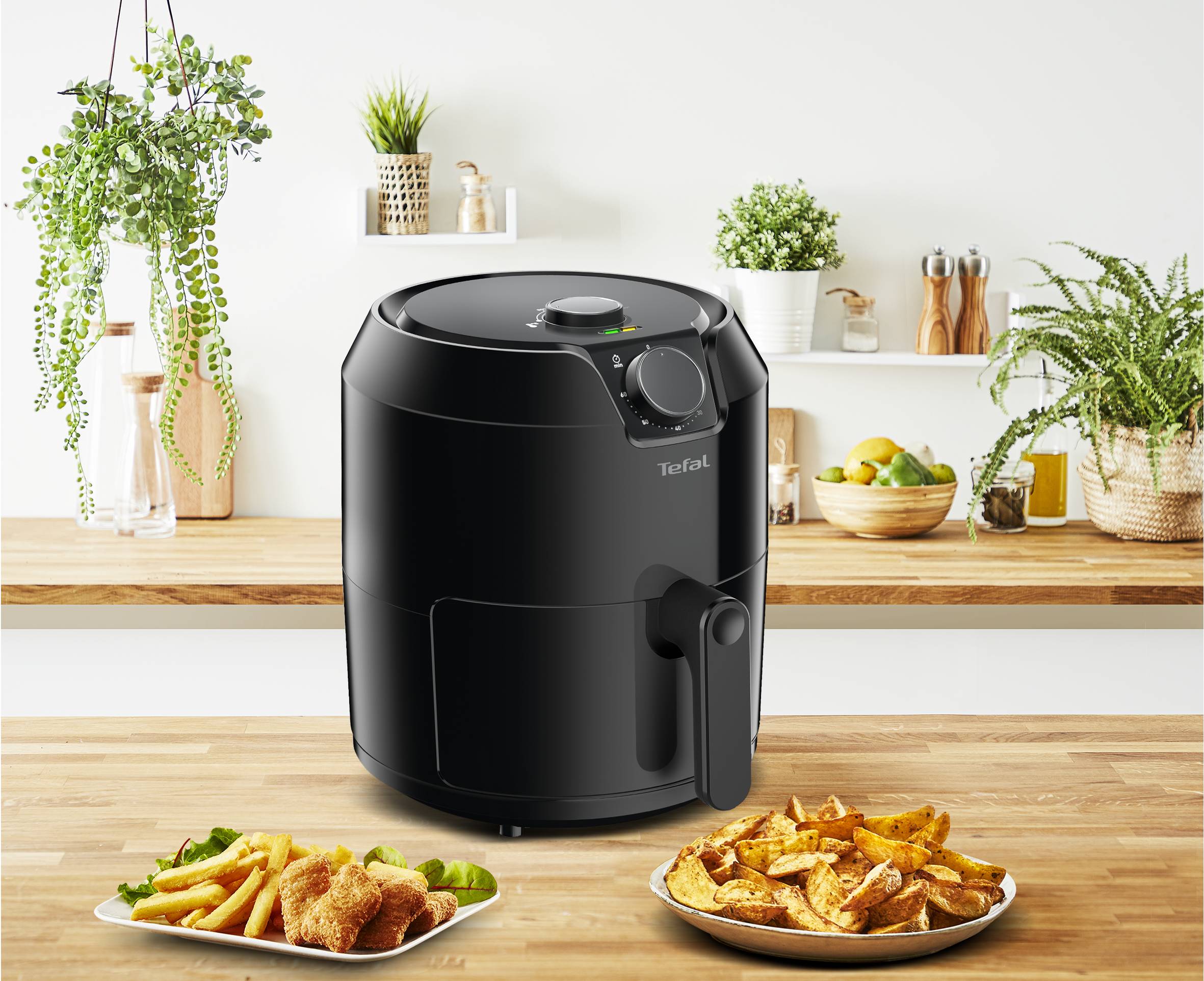 Een compacte eenvoudig op te bergen heteluchtfriteuse met een XL-inhoud van 4,2 liter voor zes porties Acht veelzijdige menu’s: friet, koteletten, garnalen, cake, pizza, vis, grill, roosteren Vetarme friteuse om gezonde recepten te bereiden met weinig tot geen olie Bespaar tot 70% aan energie* met heteluchtfriteuses van Tefal Een handige timer van 60 minuten en een automatische uitschakeling zorgen voor totaal gebruiksgemak Nauwkeurige temperatuurregeling (80°-200°C) voor perfecte resultaten met alle ingrediënten. Een gepatenteerd mandje om het product makkelijk schoon te maken