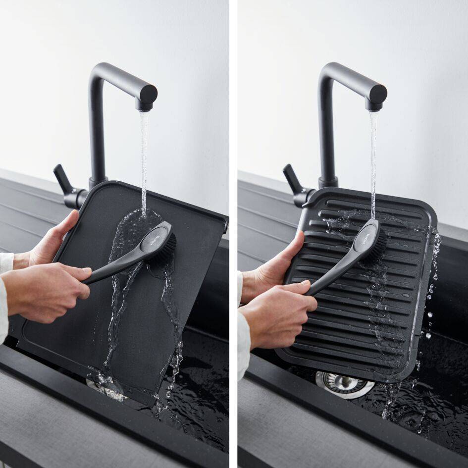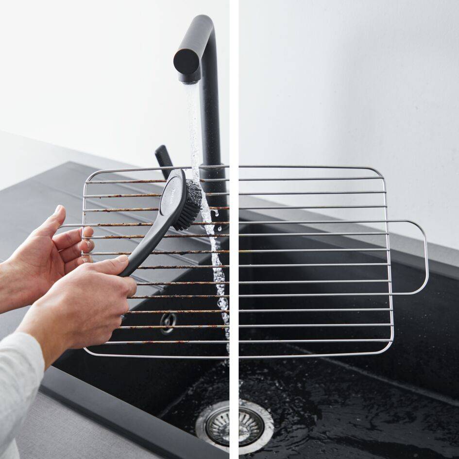 Pak het meest vervelende deel van het grillen aan met deze handige grillborstel - ontworpen om gemakkelijk alle soorten grillroosters grondig schoon te maken Zachte, niet-krassende reinigingsborstel ontwikkeld om grills schoon te maken (niet te gebruiken op hete oppervlakken) Lang handvat om elke hoek van je apparaat schoon te maken, voor extra comfort Vaatwasmachinebestendig voor snel en moeiteloos schoonmaken Onderdeel van een volledige collectie grillaccessoires - perfect voor het creëren van indrukwekkende recepten met totaal gemak
