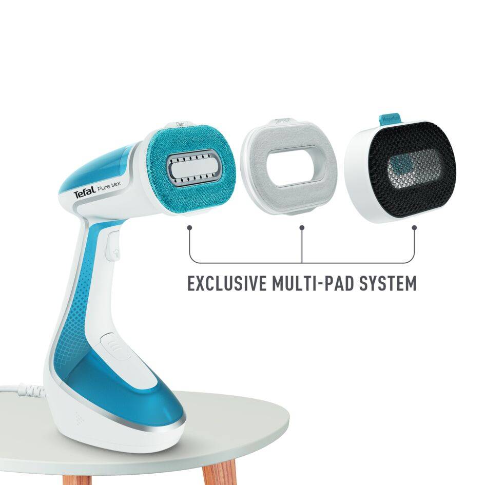 Met de innovatieve en slimme functies is de Tefal Pure Tex kledingstomer gemaakt voor gemakkelijk onderhoud van kleding en ander textiel. De Tefal Pure Tex kledingstomer ontsmet, ontkreukt, maakt schoon en voegt een lekker geurtje toe. Dit allemaal in een gebruiksvriendelijk en exclusief multi-pad-systeem dat 4 mogelijkheden biedt in 1 gebruiksvriendelijke kledingstomer. 1. Ontsmetten: De stoomkracht zorgt voor hygiëne, minder onaangename geurtjes en verfrissing, doordat deze 99,9% van de virussen, bacteriën en ziektekiemen* doodt. 2. Ontkreuken: Dankzij de unieke technologie die een verwarmde stoomkop biedt met monotemp-regeling, 1700 W aan vermogen, een continue stoomafgifte tot wel 30 g/minuut en een exclusieve stoomstoot tot wel 90 g/min, verwijdert de Pure Tex kledingstomer kreukels in een efficiënte verticale beweging, zonder dat een strijkplank nodig is. 3. Schoonmaken: Het omkeerbare 2-in-1 opzetstuk verwijdert haar, stof en pluisjes van alle soorten textiel, zelfs van de moeilijkste stoffen of stoffen die niet gewassen kunnen worden. 4. Zorgt voor een lekker geurtje: Met het opzetstuk voor parfum kun je jouw favoriete geur toevoegen in het opzetstuk en met de stoom verspreiden op jouw kleding of ander textiel in huis. Dit alles in een ultrasnelle kledingstomer, klaar voor gebruik in 25 seconden, voor geweldige resultaten op al jouw kleding en ander textiel in huis.