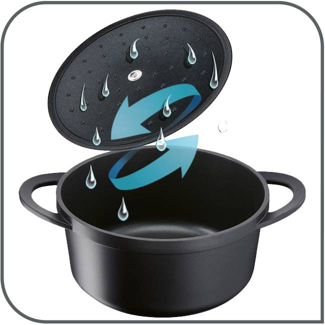 De braadpan is makkelijk te hanteren doordat deze zeer licht is in gewicht Gemaakt van gegoten aluminium waardoor de pan goed warmte vasthoudt en je verzekerd bent van malse resultaten Veilige coating: Tefal gebruikt coatings die door veiligheidsautoriteiten die als veilig voor de gezondheid worden beschouwd. Om dit te garanderen worden tests uitgevoerd door externe onafhankelijke laboratoria. Op de Tefal website onder de sectie Klantenservice kun je meer informatie vinden over Tefal pannen en de studies raadplegen die in de Q&A's staan. Geschikt voor alle warmtebronnen (gas, elektrisch, halogeen, keramisch), inclusief inductie Deksel met condensatienoppen zorgt ervoor dat condens terugvalt op het gerecht waardoor deze nog malser wordt Inclusief siliconen handgrepen zodat de pan veilig vastgepakt kan worden (tot 210°C) De pan heeft een diameter van 24cm en inhoud van 4,5 liter Braadpan kan in de oven tot 250°C Anti-aanbaklaag is versterkt met Titanium deeltjes voor nog betere krasbestendigheid
