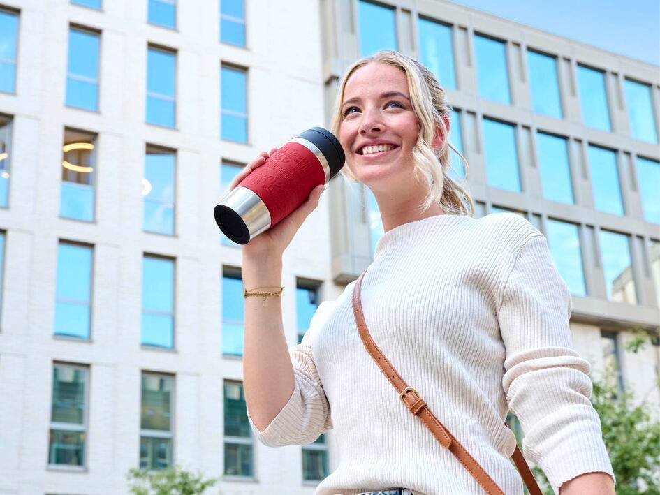 Uitgerust met een comfortabele draaidop waardoor vullen gemakkelijk is. Ontdek de perfecte reisbeker voor dagelijks gebruik - om van al je favoriete dranken te genieten, waar het leven je ook brengt. Eenvoudig drinken binnen handbereik: Eenvoudig drinken onderweg met een comfortabele draaidop met snelle drukknopopening. Drinken met één druk op de dop! De Travel Mug is gemaakt van duurzaam roestvrij staal en ontworpen om lang mee te gaan en wegwerpplastic te verminderen. 100% lekvrij voor totale gemoedsrust onderweg - past gemakkelijk in je tas of bekerhouder in de auto. De roestvrijstalen uitvoering is perfect voor alle soorten dranken, en houdt warme dranken tot 4 uur warm en koude dranken tot 8 uur koel. De 360º draaidop zorgt ervoor dat je moeiteloos vanuit alle hoeken kunt drinken. Handig vaatwasmachinebestendig ontwerp met een draaidop dat gemakkelijk in twee delen uit elkaar kan worden gehaald, voor perfecte hygiëne.