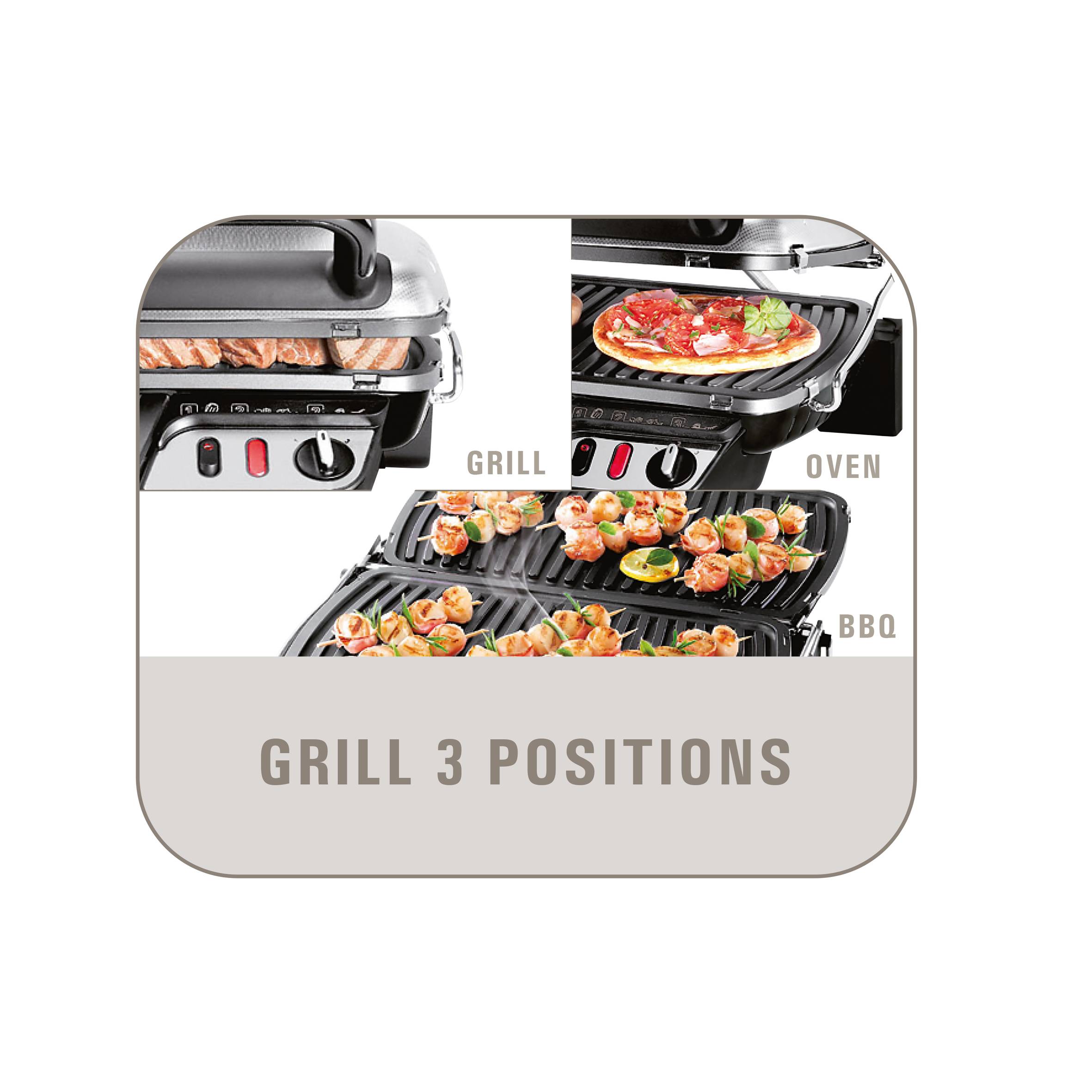 Binnengril met twee standen, grill en barbecue, voor heerlijke maaltijden met familie en vrienden Prestatiegerichte elektrische grill met een vermogen van 2000 W voor heerlijke resultaten Platen met antiaanbaklaag om gezonder te koken zonder vet of olie toe te voegen Vaatwasmachinebestendige, afneembare platen en opvangbak om het apparaat eenvoudig schoon te maken Instelbare temperatuurregeling voor heerlijke resultaten, van vlees en vis tot groenten, panini’s en meer