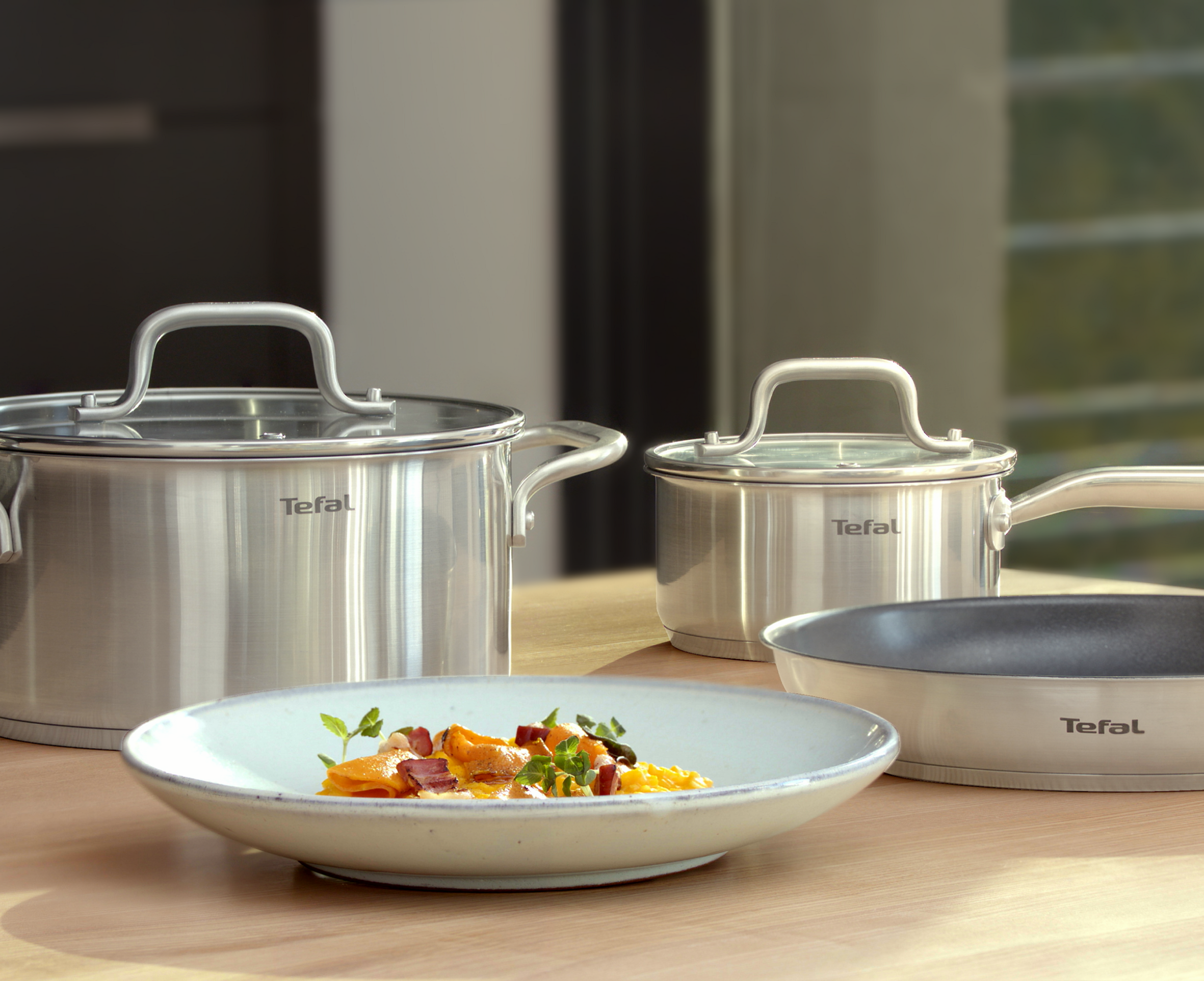 De Tefal Virtuoso vijf-delige pannenset laat je niet alleen heerlijke gerechten bereiden; hij gaat ook jarenlang mee dankzij het gebruik van hoogwaardige materialen. Ontworpen met duurzaam 18/10 roestvrij staal, krijg je 10 jaar garantie op de set en geniet je elke dag van heerlijke maaltijden.
